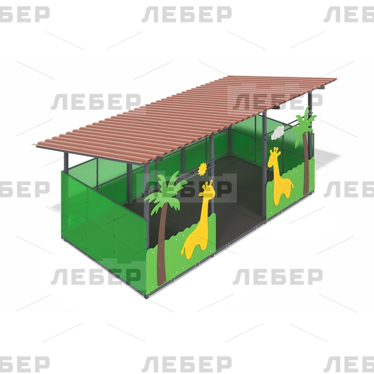 Теневой навес 3000х6000 (стены - поликарбонат, фанера) с декоративными элементами "Жирафы"