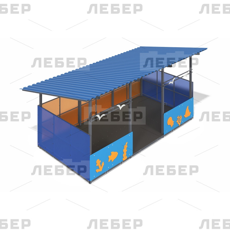 Теневой навес 3000х6000 (стены - поликарбонат, фанера) с декоративными элементами "Море"