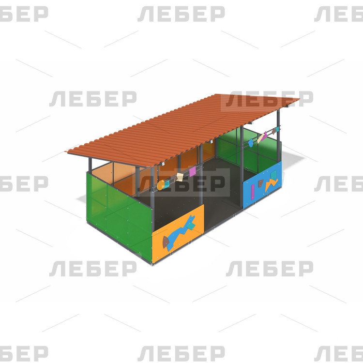 Теневой навес 3000х6000 (стены - поликарбонат, фанера) с декоративными элементами "Конструктивизм"