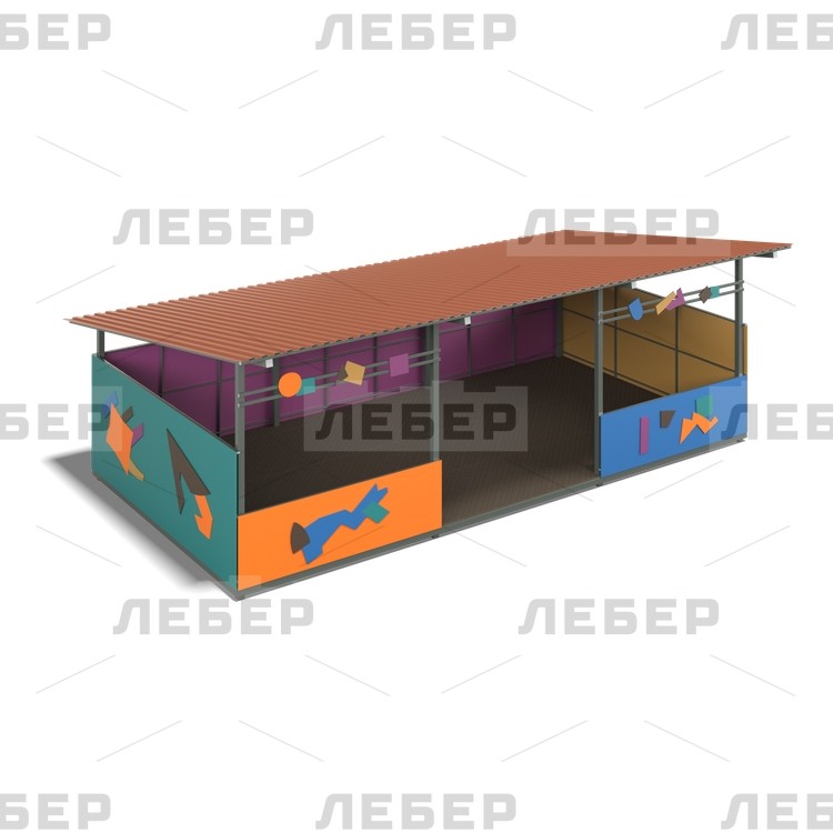 Теневой навес 4000х8000 (стены - фанера) с декоративными элементами "Конструктивизм"