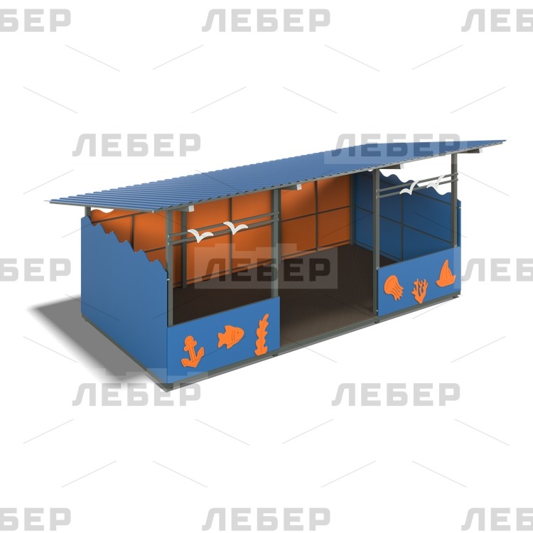 Теневой навес 4200х6000 (стены - фанера) с декоративными элементами "Море"