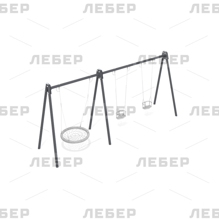 Рама качелей "Гнездо" и двойная рама на металлических опорах