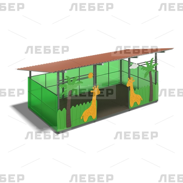 Теневой навес 4200х6000 (стены - поликарбонат, фанера) с декоративными элементами "Жирафы"