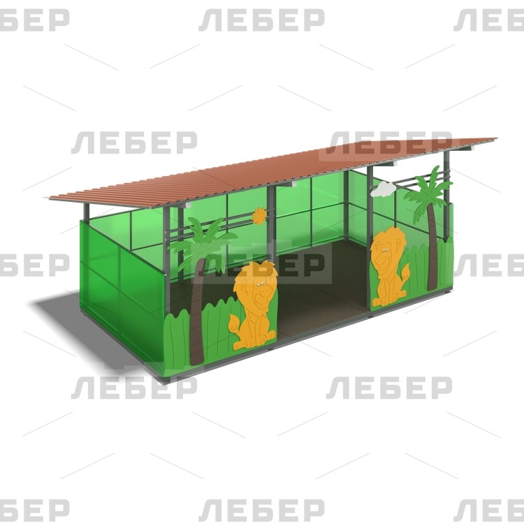 Теневой навес 4200х6000 (стены - поликарбонат, фанера) с декоративными элементами "Львы"
