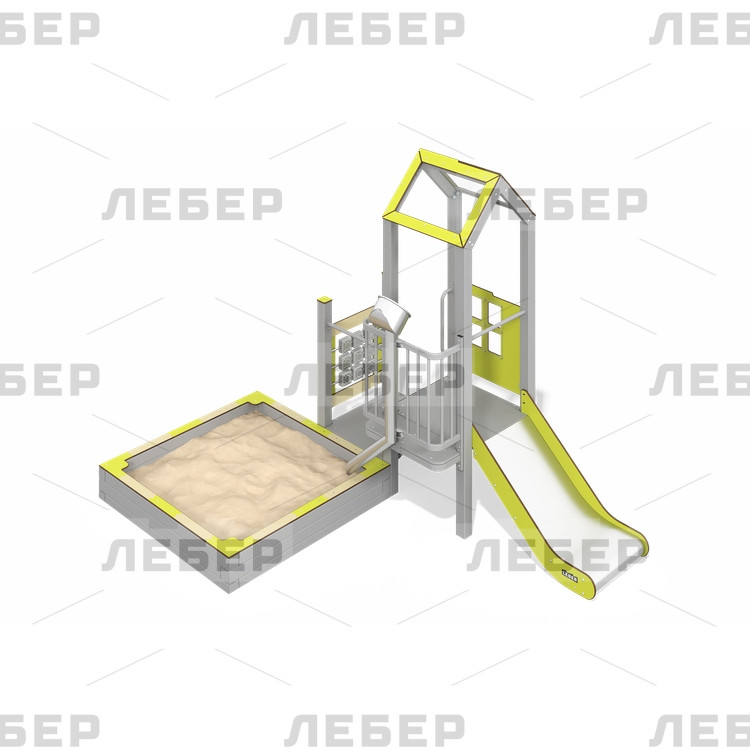 Игровой комплекс с песочницей на металлических столбах